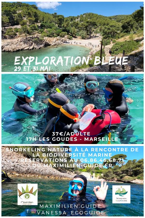 Plongez dans l'univers fascinant de la Méditerranée lors d'une sortie palmes, masque et tuba guidée par Vanessa, monitrice de plongée spécialisée, et Maximilien, guide nature passionné. Pendant environ 1h, explorez en surface la richesse insoupçonnée des fonds marins : herbiers de posidonie, bancs de poissons et secrets d'un écosystème fragile.
